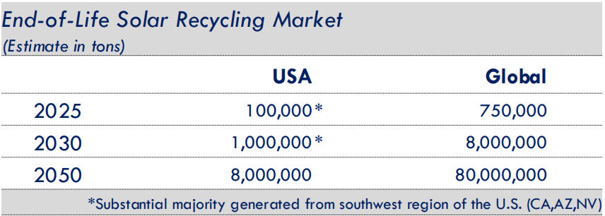 A huge number of solar panels are nearing the end of their lifespans in the coming years and decades, increasing the need for economically viable non-landfill recycling solutions.