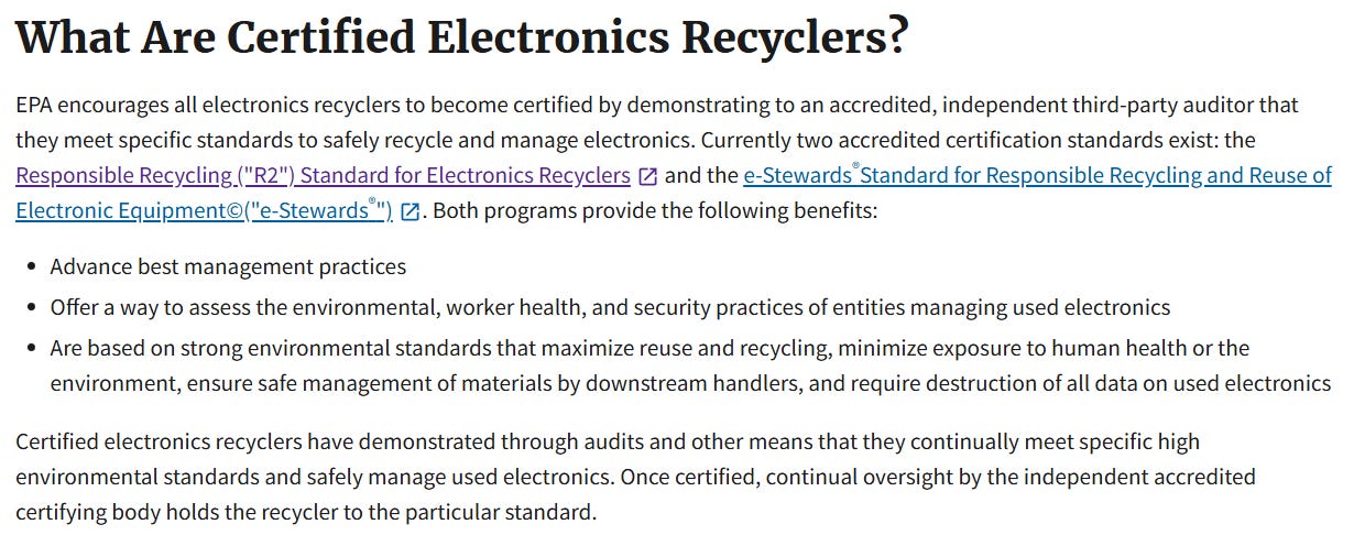 Source: https://www.epa.gov/electronics-batteries-management/certified-electronics-recyclers