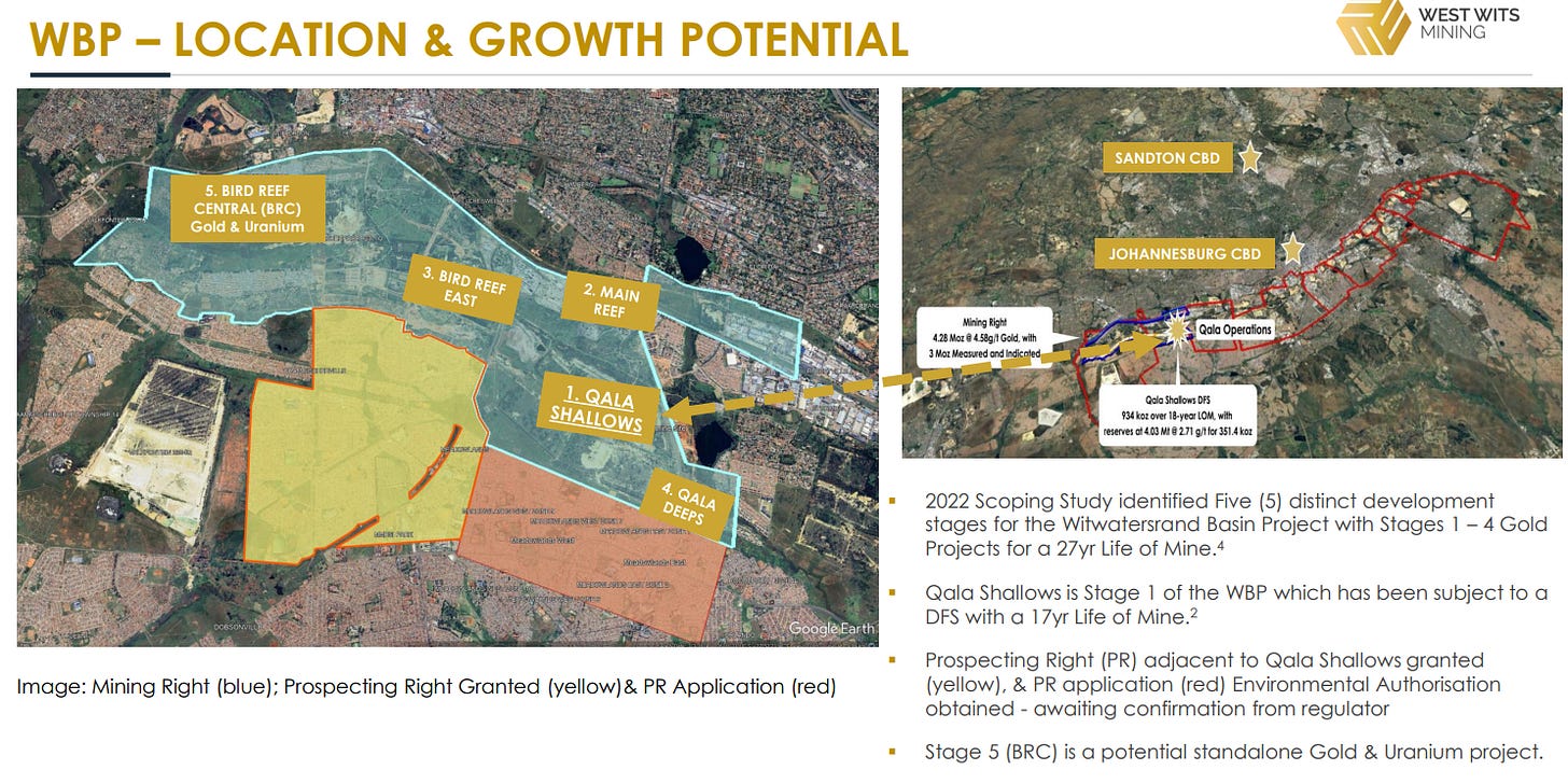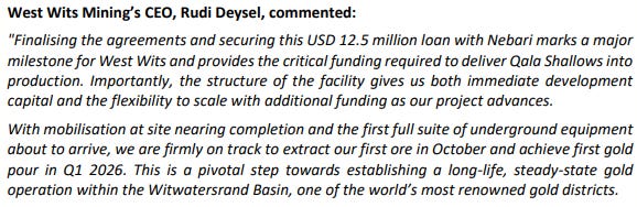 Currently, West Wits is putting Stage 1 of the WBP project into production, known as Qala Shallows, with the first gold pour expected in Q1 2026. Qala Shallows is what is really relevant for us at the moment, as it is a massive project in itself and is worth significantly more than the valuation of West Wits.